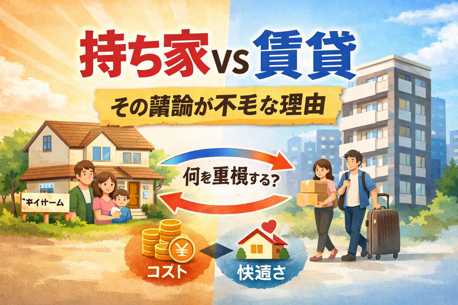 〜正解は「何を重視するか」で180度変わる〜 「持ち家か賃貸か」 家を考え始めると、必ずと言っていいほど目にするテーマです。 持ち家は資産になる 賃貸は身軽で合理的 生涯コストは賃貸の方が安い 老後は持ち家が安心 どれももっともらしく聞こえますし... -